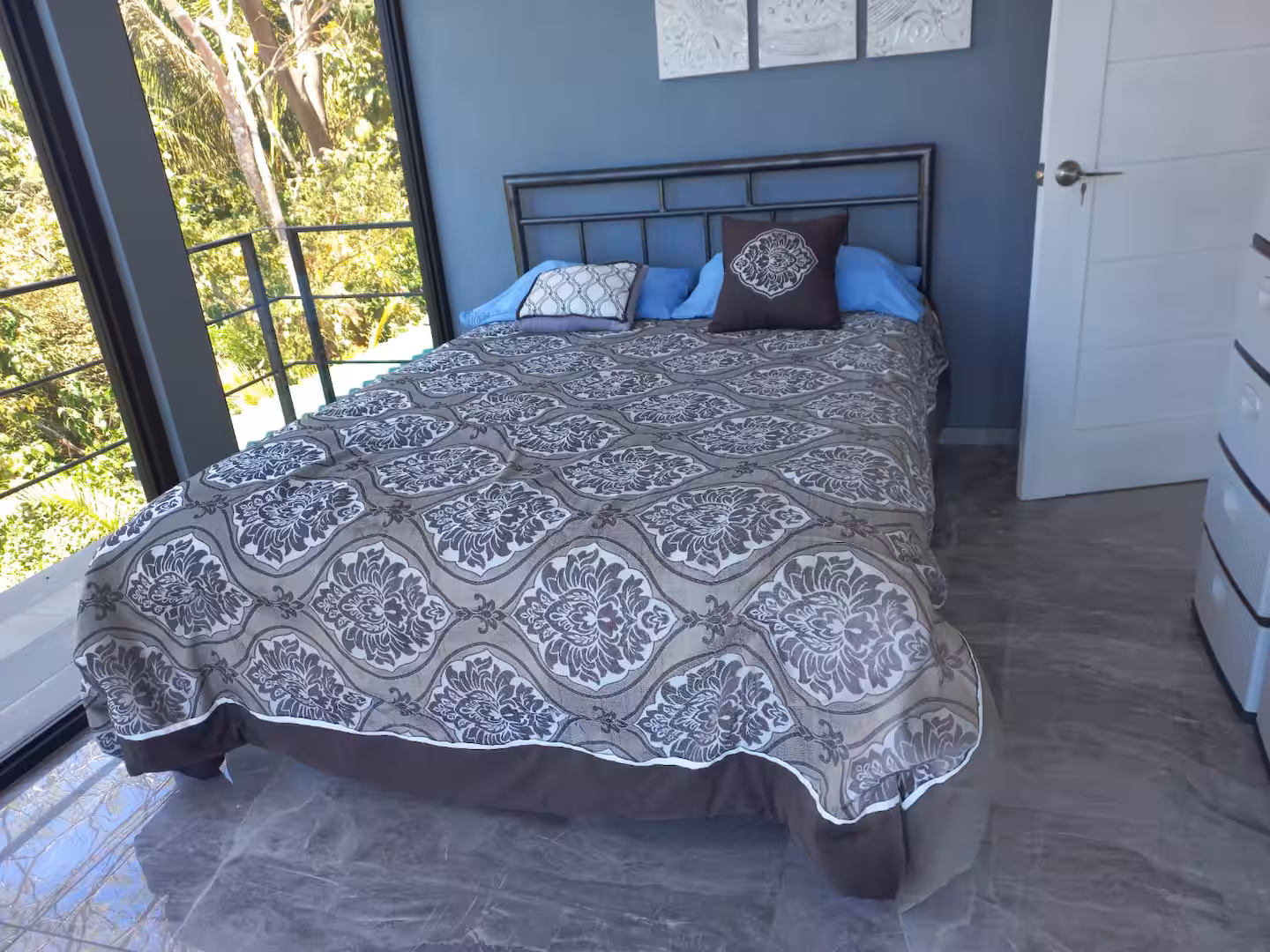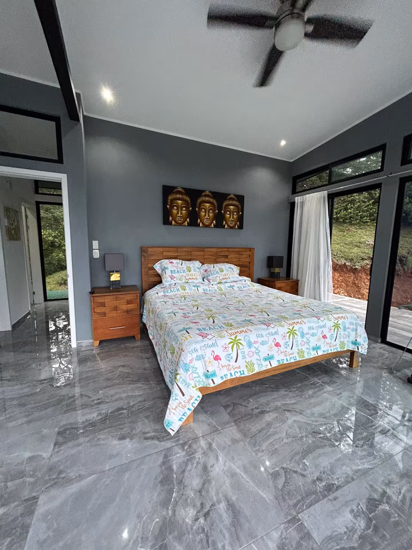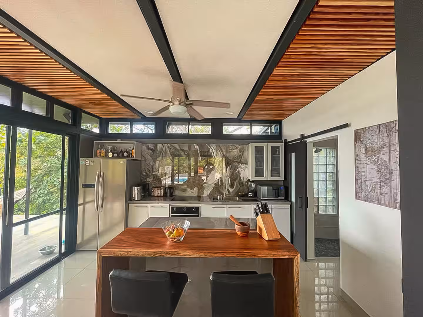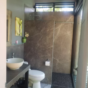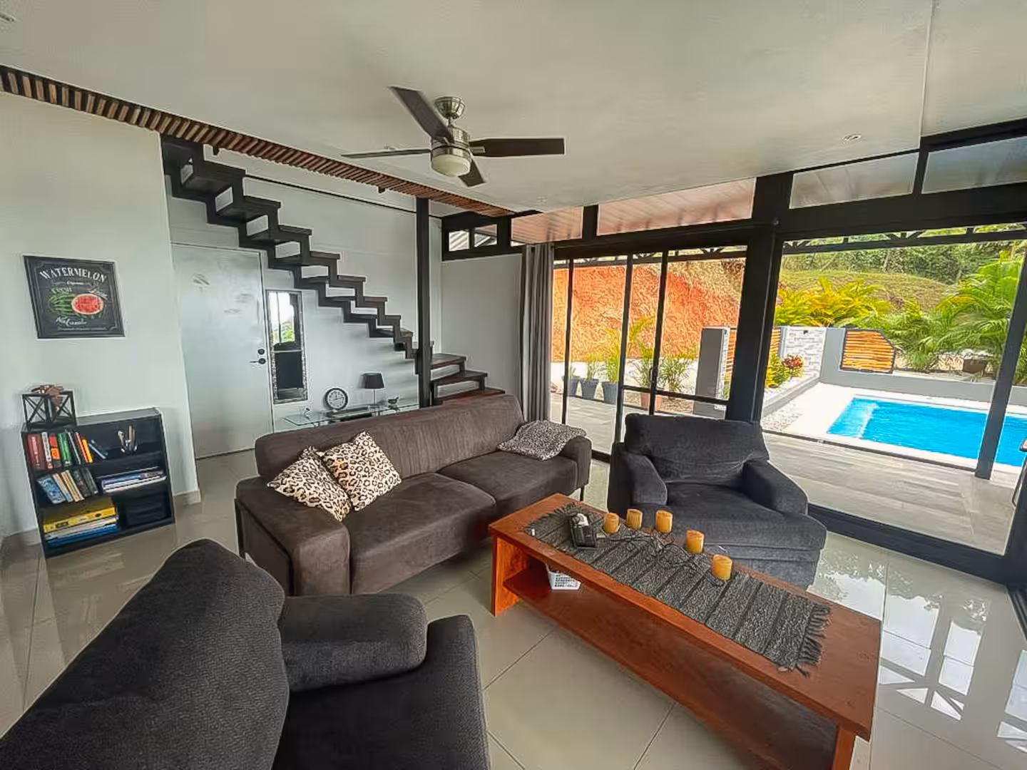 This house boasts panoramic views that seamlessly blend nature's finest elements. With each glance outside, residents are reminded of the captivating beauty that surrounds them. It's located up in the hills, only a 10 minute drive away from Carrillo or Sámara beach.